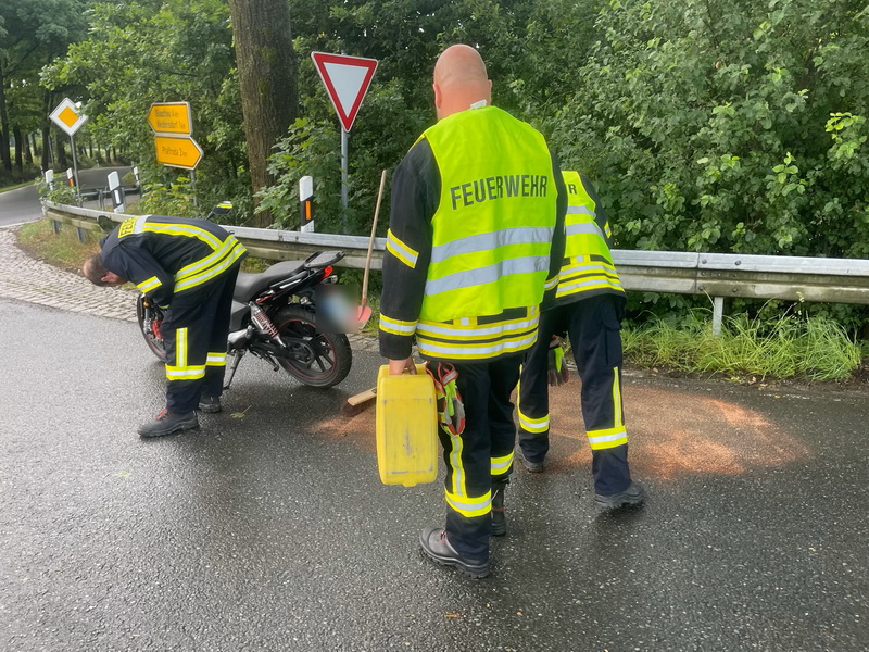 Einsatz Nummer 6 ereignete sich kurz nach 7 Uhr am heutigen 16. Juni. Im Ortsteil Weidensdorf hatte am Ortseingang aus Richtung Pfaffroda ein Motorradfahrer auf regenasser Fahrbahn ohne Fremdeinwirkung die Kontrolle über seine Maschine verloren und war gestürzt. Dabei verletzte er sich, so dass er mit dem Rettungsdienst ins Krankenhaus gebracht wurde.