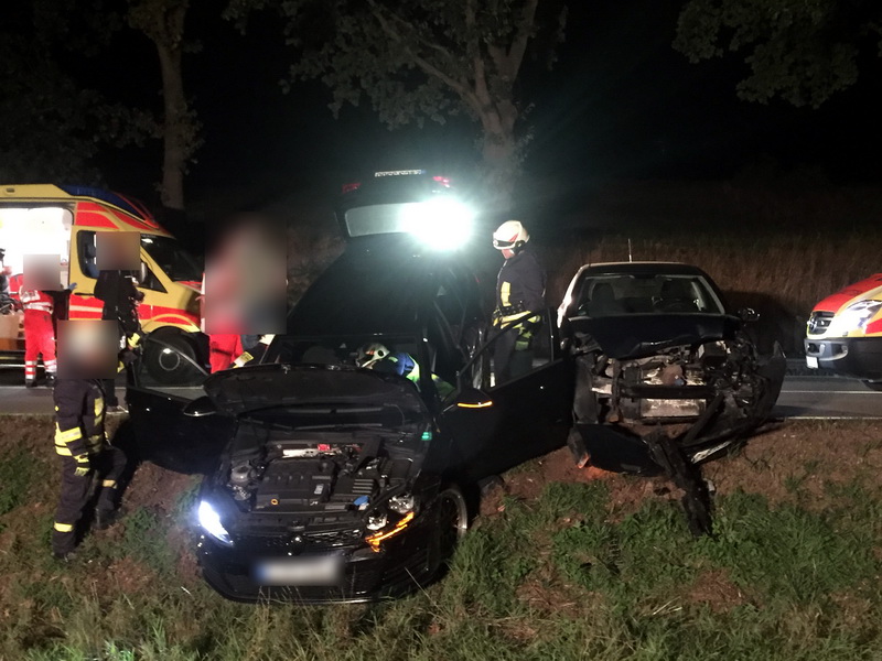 Der Fahrer eines PKW war von Remse in Richtung Kertzsch unterwegs als ihm in einer Linkskurve ein Fahrzeug teilweise auf seiner Fahrspur entgegenkam. Der Versuch auszuweichen scheiterte und so kollidierten die beiden Fahrzeuge leicht versetzt miteinander. Zudem konnte ein ebenfalls hinter dem PKW in Richtung Kertzsch fahrender Fahrzeugführer nicht mehr rechtzeitig bremsen und kollidierte in der Folge noch mit einem der Unfallwagen bevor alle drei PKW am abschüssigen Straßenrand zum Stehen kamen.